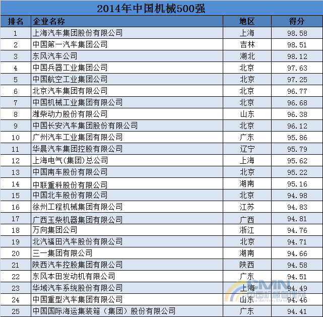 2014年中國機(jī)械500強(qiáng)排名