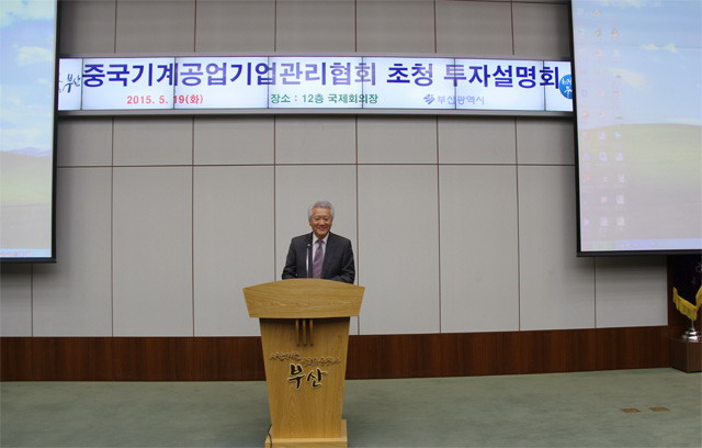 機(jī)械組合的發(fā)展和對外合作交流得到韓國釜山市政府的支持,在機(jī)械組合到訪北京時,釜山市政府行政次官等隨同參加中韓交流活動。此次去釜山,釜山市政府在2015年5月19日組織有關(guān)部門人員在政府大樓報告廳舉辦歡迎儀式,釜山市副市長趙敦榮會見了中機(jī)企協(xié)交流團(tuán)成員。
