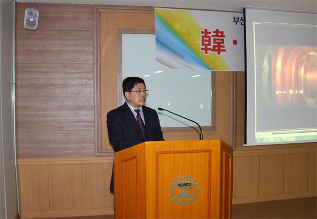 在致詞中歡迎中方企業(yè)家來韓合作交流,并介紹釜山的地理優(yōu)勢和制造業(yè)能力,他說釜山的機(jī)械產(chǎn)品產(chǎn)值占韓國整體機(jī)械工業(yè)55%,有7萬多家機(jī)械及相關(guān)企業(yè)在釜山及周邊地區(qū),是韓國機(jī)械和機(jī)械加工產(chǎn)業(yè)的最大集散地。強(qiáng)調(diào)中韓企業(yè)合作潛力巨大,中國市場前景廣闊,中國經(jīng)濟(jì)發(fā)展令世人羨慕,希望通過中韓兩國政府和行業(yè)組織的密切合作,促進(jìn)兩國企業(yè)的快速發(fā)展。