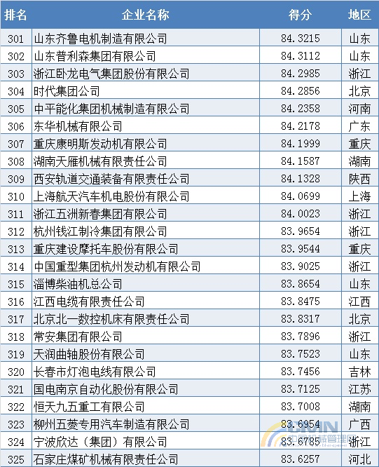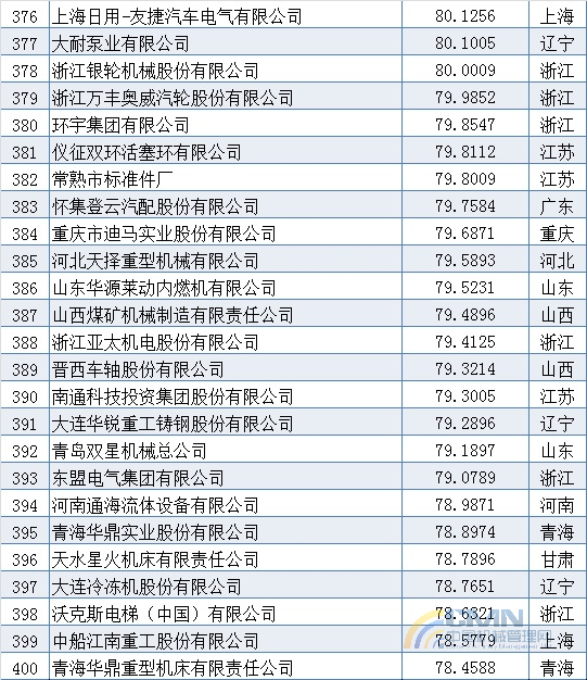2011年中國機械500強排名(301-400)