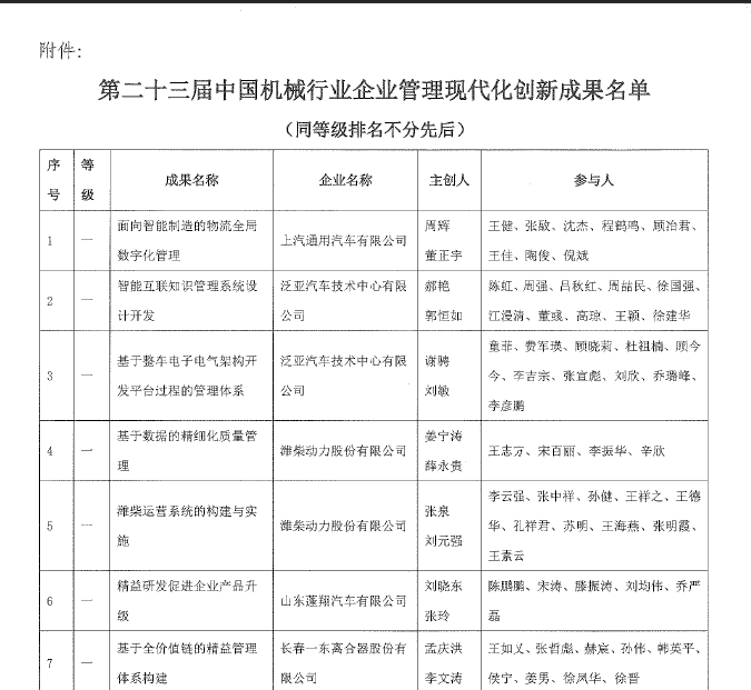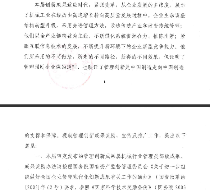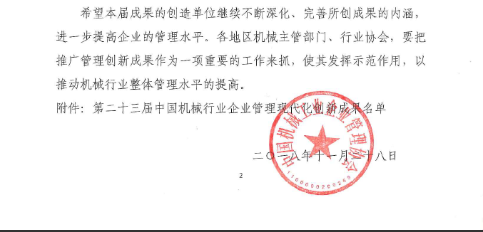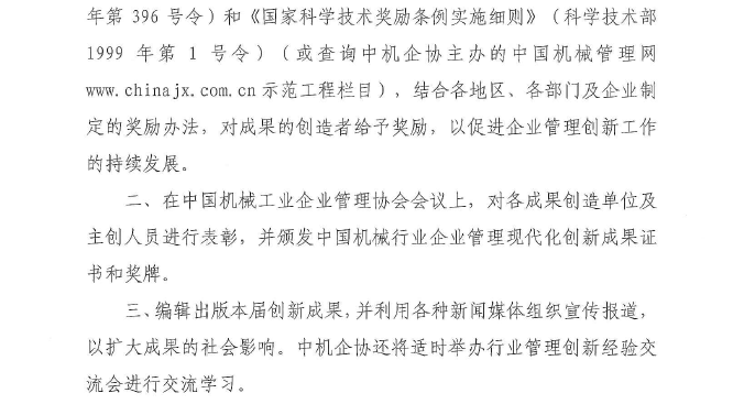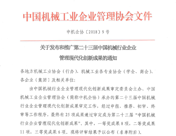 關(guān)于發(fā)布和推廣第二十三屆中國機械行業(yè)企業(yè)管理現(xiàn)代化創(chuàng)新成果的通知