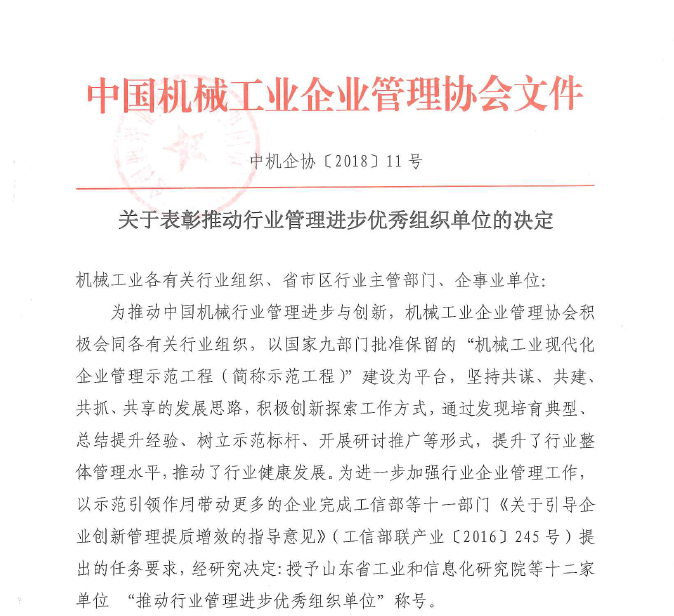 關于表彰推動行業管理進步優秀組織單位的決定-中機企協〔2018〕11號.pdf