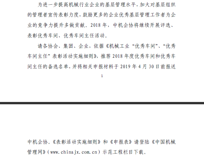 (一)該活動每年開展一屆,企業自愿參加,由下列組織或個人依據條件負責向中機企協《機械工業“優秀車間”、“優秀車間主任”表彰活動》辦公室(以下簡稱:活動辦公室)進行推薦: