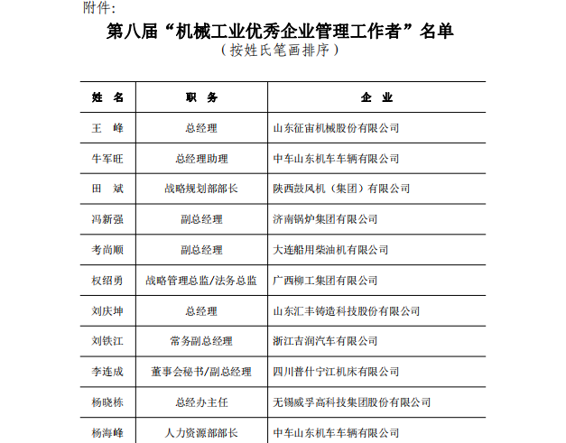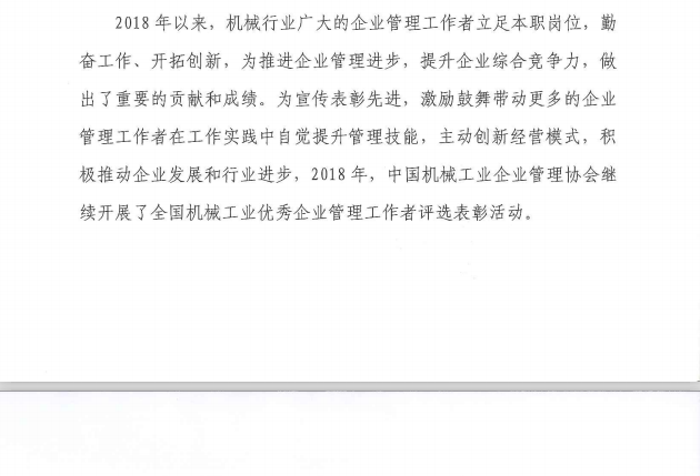 關于表彰第八屆機械工業優秀企業管理工作者的決定
