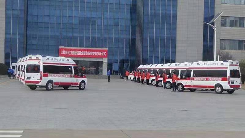 2月2日,江鈴汽車向武漢捐贈的10輛福特全順負壓監護型救護車開始陸續下線發車,投入抗疫一線使用,這是全國首批交付武漢急救中心的負壓救護車,將用于武漢火神山醫院轉運病人。